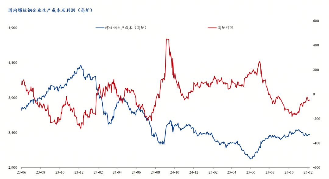 截止12月31日,高爐廠生產(chǎn)螺紋鋼的平均成本為3373元/噸,電爐廠生產(chǎn)成本為3217元/噸,當前市場螺紋鋼銷售均價為3324元/噸,其中高爐廠生產(chǎn)螺紋鋼平均虧損48.66元/噸、電弧爐企業(yè)生產(chǎn)螺紋鋼平均盈利107元/噸。